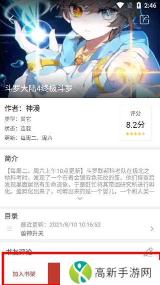 4、在漫画的界面当中,用户可以加入书架、立即阅读以及缓存;