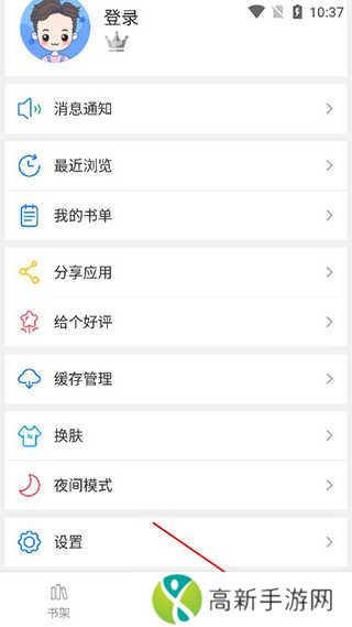 2、在这个页面当中可以看到浏览记录和下载的小说,此时点击设置。