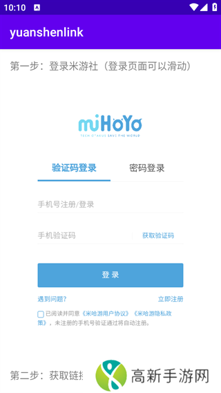 4、下载安装原神link之后,打开进入,使用您的原神账号登录,注意不是UID哦;