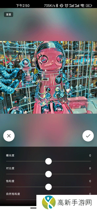 6、下一步就是调节图片的曝光度、对比度等参数,调好之后点击右上方的“√”。