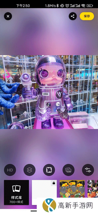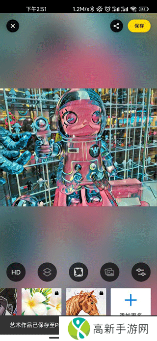 7、将图片编辑好之后点击右上角的“保存”,将图片保存到prisma文件夹中,这时候就制作好了一个漂亮的艺术作品了。