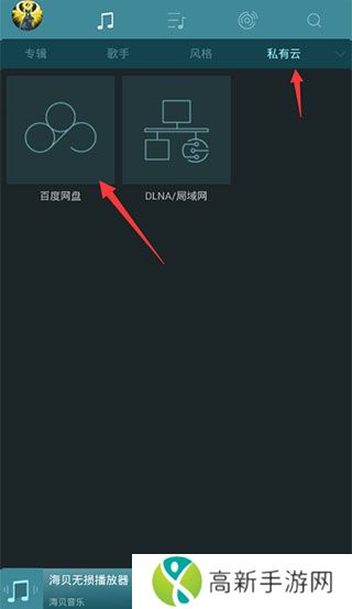 海贝音乐怎么播放百度网盘音乐1、其实大家想要播放百度云盘里面的歌曲,首先需要去搜索栏的下方滑动找到“私有云”的功能,然后点击进入私有云的页面里才能找到百度网盘;