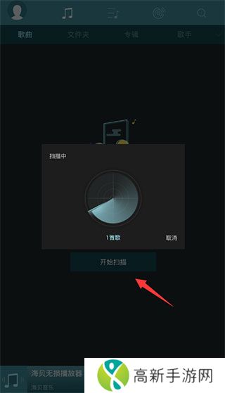 1、海贝音乐app作为一款本地音乐播放器,是不提供在线搜索歌曲功能的,用户们初次进入软件则需要点击“开始扫描”按钮进行扫描;