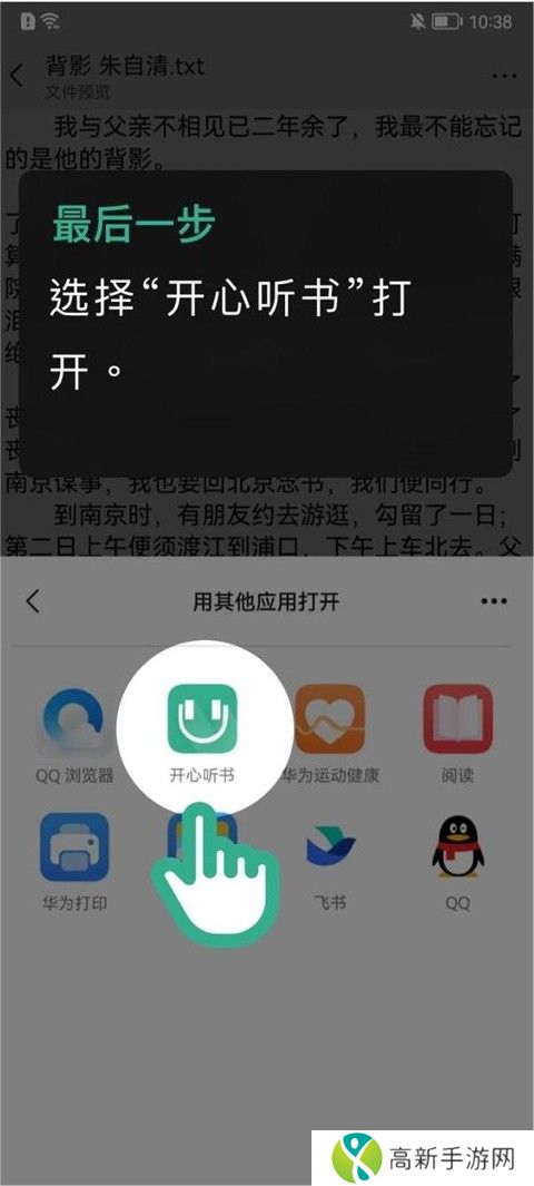 开心听书怎么导入微信文件1、打开开心听书,然后在微信聊天中打开您要阅读的文件