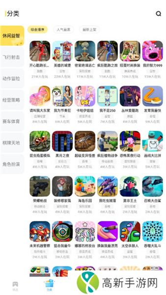 2、点击分类板块,将软件内所有的游戏根据不同的类型进行归纳划分,便于大家根据游戏类型快速查找。