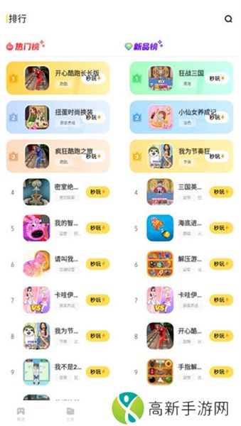 3、点击排行榜栏目,有各种热门榜/新片榜等不同的栏目榜单,不知道玩什么游戏也没有关系,跟着大部队走准没错。