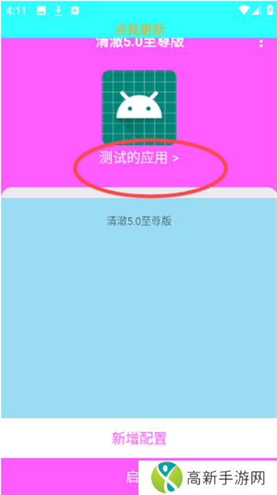 2、接着在首页选择测试应用。