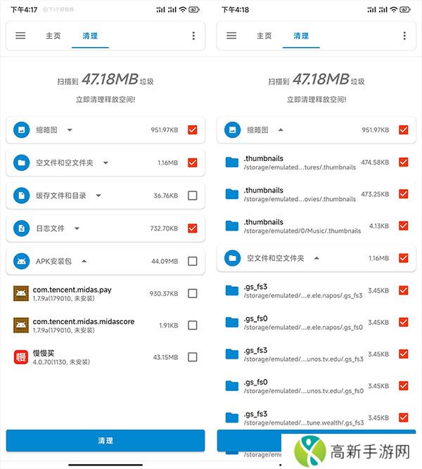 3、*清理功能方面,目前来说比较简单,会自动扫描比较常规的*文件,点击下拉可以查看详细清理的内容。