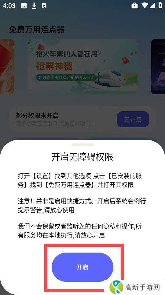 2、进入后,需要自定义开启相关权限,点击去开启。