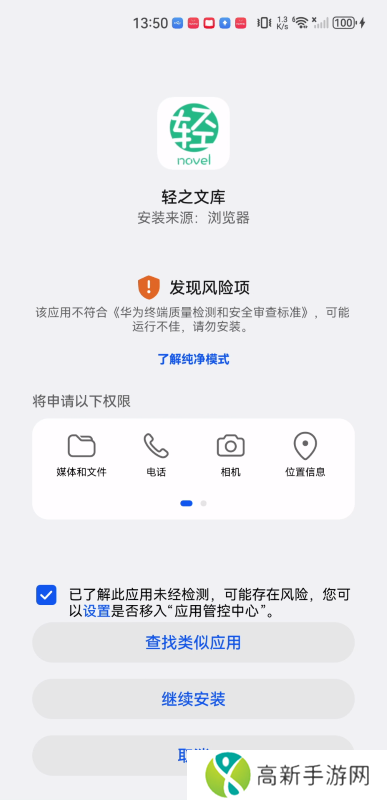 3、点击勾选“已了解此应用未经检测……”,点击“继续安装”。