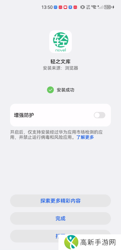 5、显示绿色对号“说明已安装成功”,点击打开,即可体验。