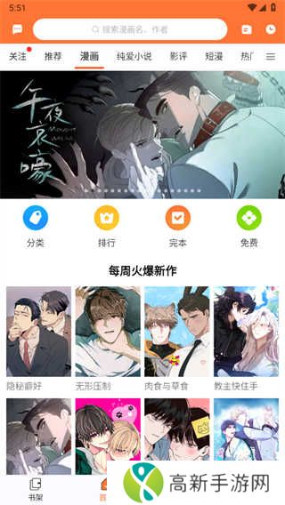 3、在这里,您可以看到各种类型的漫画作品,如热门连载、推荐列表等,你可以根据自己的兴趣选择感兴趣的漫画进行阅读。