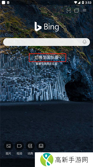 微软新必应bing安卓版怎么调出机器人?1.打开APP,点击切换为“国际版”。