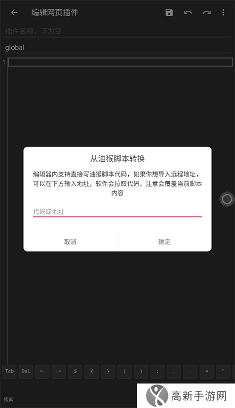 2、在此页面点击“新增”输入地址或手动粘贴油猴脚本代码,粘贴后软件会拉取代码,安装后即可使用该功能。