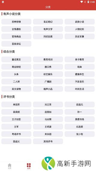 老白听书安卓版使用攻略1、进入app无需注册登录,在首页可以点击上方的菜单栏,可以进行小说、文学作品的查看。