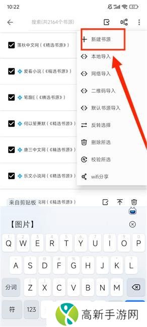 4、选择“新建书源”