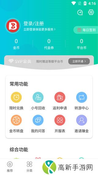 2、点击游戏分类你可以根据游戏类型寻找游戏