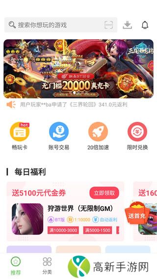 1、打开变态手游盒子App,在首页你可以看到很多好玩的BT变态版游戏