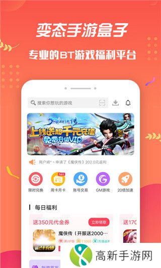 变态手游盒子软件亮点1、海量游戏资源:提供丰富的BT游戏、全V特权、无限钻石等福利。