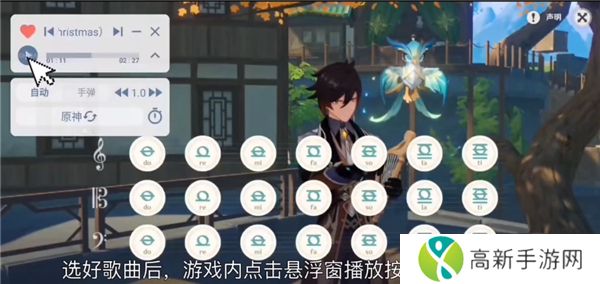 切换到游戏里的演奏界面,点击悬浮窗的播放按钮即可自动演奏啦~