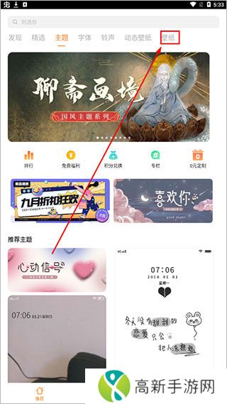 1、在本站下载安装i主题,运行软件,点击上方选择壁纸;