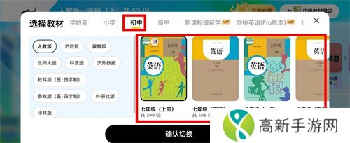 1、ABC英语角年主界面后点击【切换学习内容】。