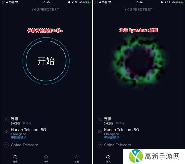 激活彩蛋:在 Speedtest 主页面长按开始按钮,十几秒后就会激活彩蛋。