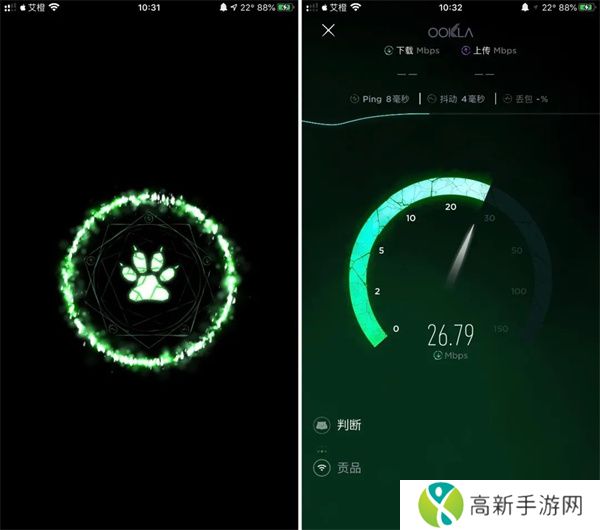 然后,测速一次,这个时候界面就是新主题样式,变成绿色的猫爪风格。