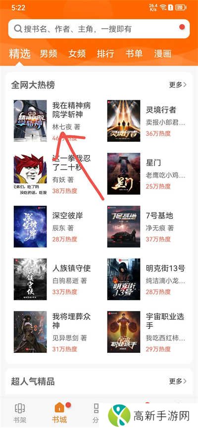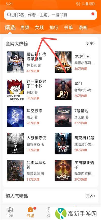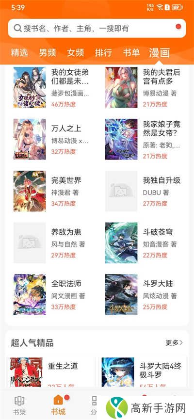 2、在首页中,我们可以看到精选、男频、女频、排行、书单、漫画等。