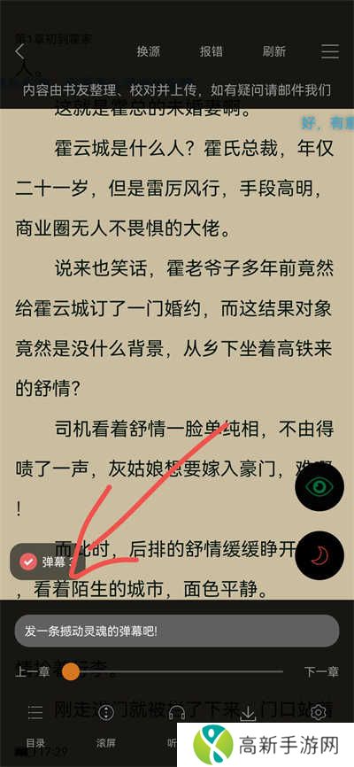 3、在阅读页面点击弹幕设置。