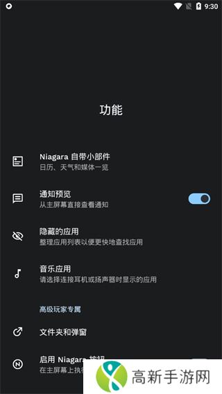 3、然后在niagara设置当中我们还可以进行功能设置,比如niagara自带的一些小部件,和通知预览等等;