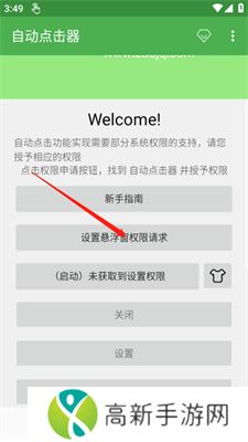 自动连点器怎么设置依次点击1、软件首页点击【设置悬浮窗权限请求】!