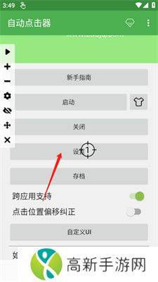 6、然后软件机会显示自动点击,再来选择【设置】!