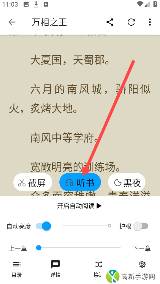 乾坤听书怎么免费听书1、进入软件,任意阅读一本你喜欢的小说。