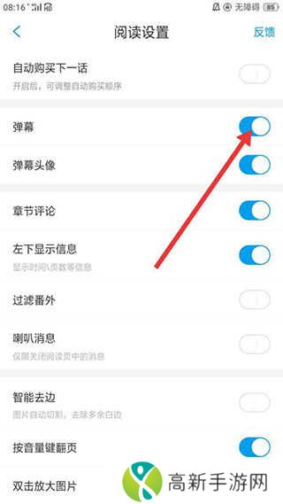 4、进入到阅读设置界面后,我们再滑动弹幕后面的滑块至灰色即可。