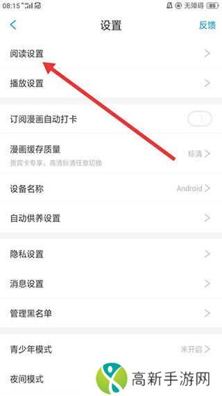 3、进入到设置界面后,我们再点击上面的阅读设置选项即可。