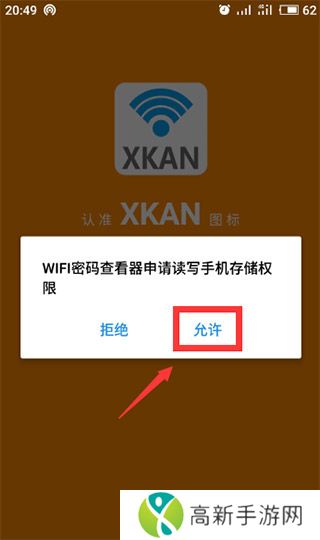 2、允许wifi密码查看器权限,同意授权写入手机内存;