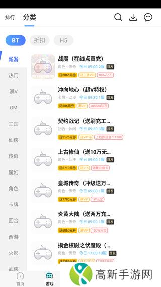 2、点击游戏,你还可以根据游戏类型找到想要玩的游戏;