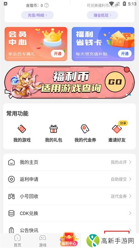最后点击“我的”即可进行日常的游戏、代金券、礼包等管理操作