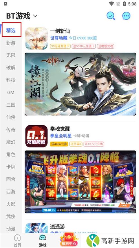 进入游戏的版块中,即可根据新游、破解、GM等分类进行选择