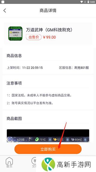 3、如果有感兴趣的就可以点击立即购买,成功支付即可获得该商品或者账号。