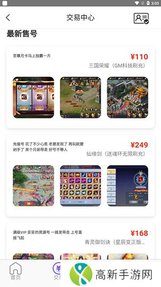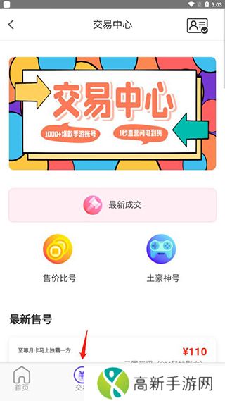 1、打开游戏乐园app,想要买号的玩家可以点击交易;