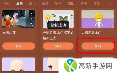 4、打开悬浮窗,选择你想要的造型,点击复制;