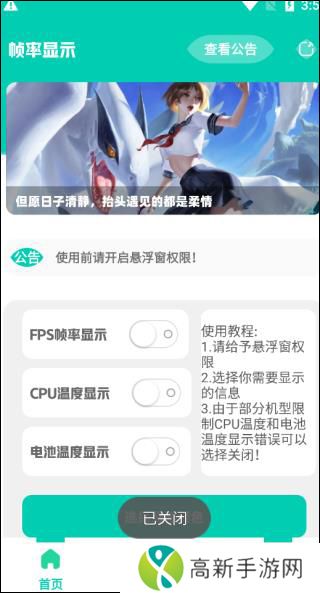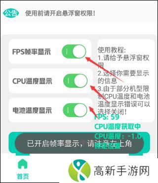 帧率显示器使用教程1、下载安装好帧率显示器软件后,先给app悬浮框的权限。