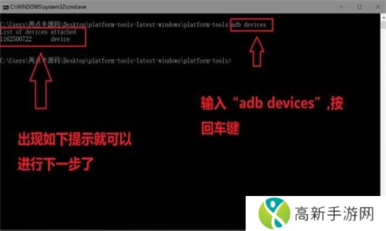 9、在弹出的命令窗口中输入“.adb devices”命令,就可以查看连接完成的手机。