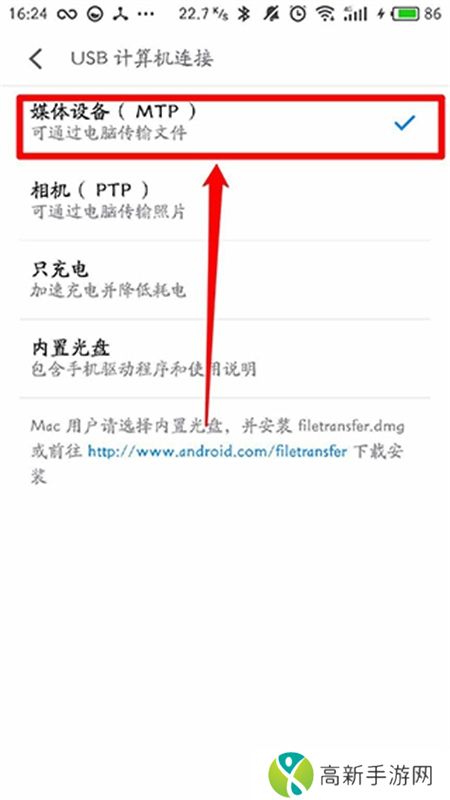 6、然后使用数据线连接到电脑上,选项可传输文件选项。