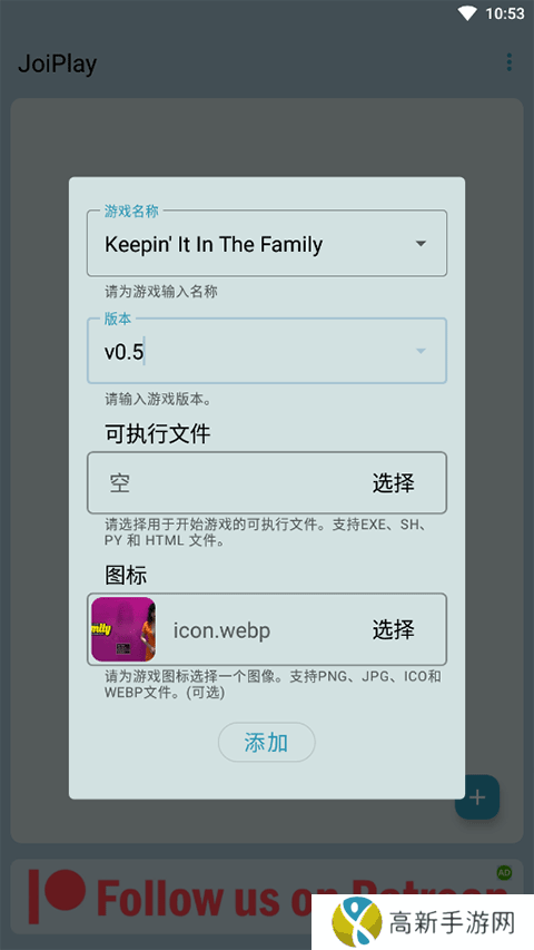 2、选择游戏名称、版本、执行文件,点击添加即可。