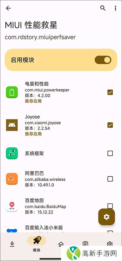 a、首次启用模块、更新模块版本的时候,需要强制停止 “性能与电量”和“Joyose” 应用。