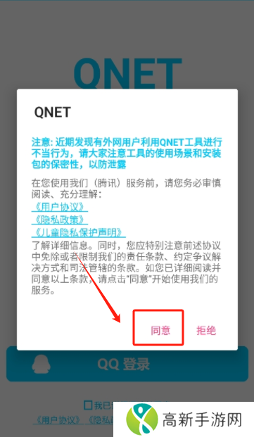 QNET弱网黄金版怎么用?1、打开软件先同意相关的协议规定