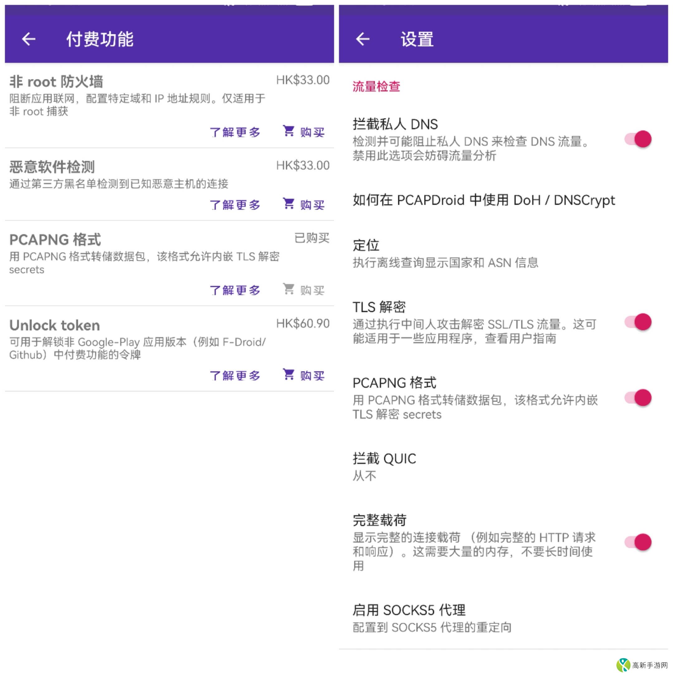 存储为PCAPNG格式,付费后解锁的功能,目前价格是13港币即可解锁,并且解锁后允许进行TLS解密,在设置里面勾选即可: